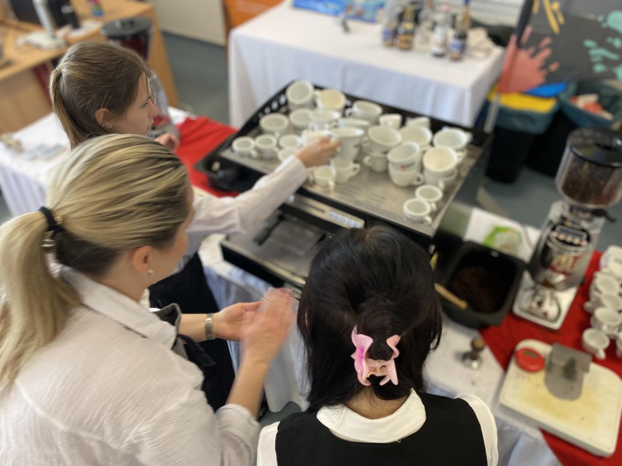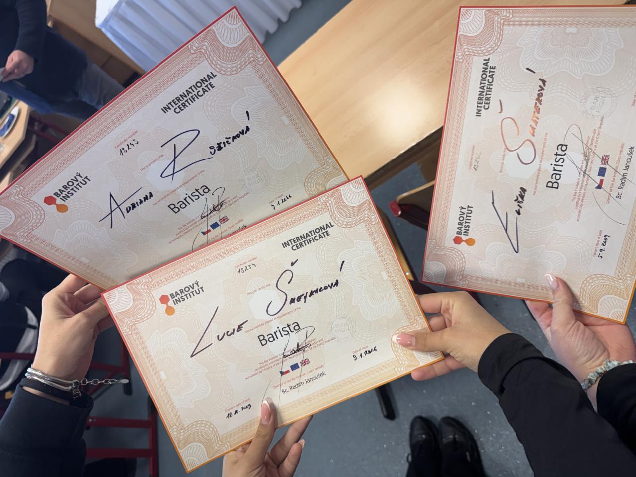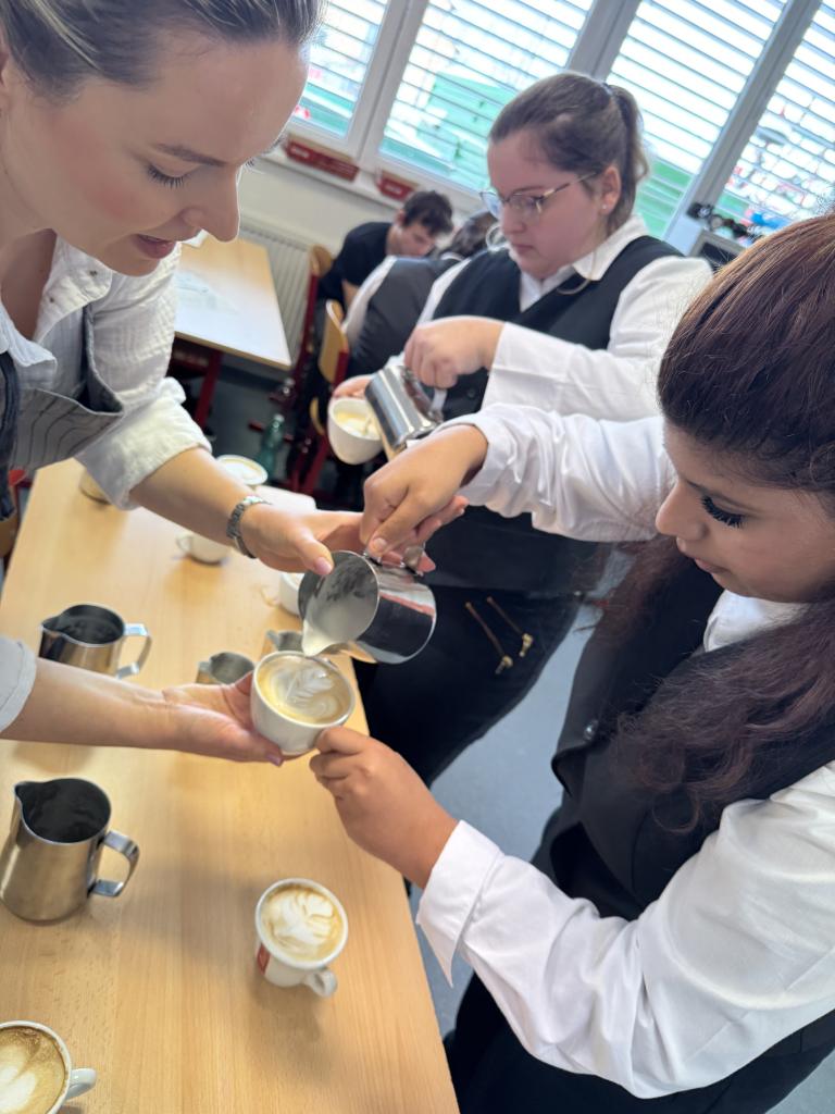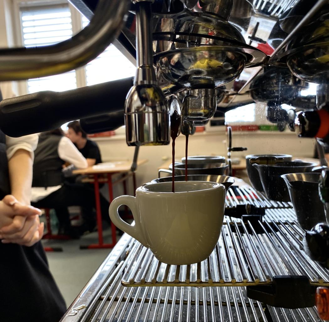 Dnes ale v kavárnách není vše jen o dobře "protlačené" kávě. Jen málokdo si dnes totiž objedná espresso. A tak naši studenti, aby byli na svou budoucí profesi připraveni, musejí vědět, jaké poměry kávy a mléka obsahují různé druhy kávových nápojů. Učili se tedy jak připravit vše od Ristretta až po Flat white.