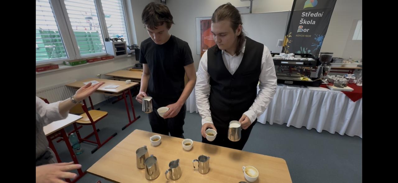 JídelníčekV pátek 9.1.2026 k nám do Boru vyrazili z pražského Barového istututu aby naše číšníky/kuchaře druhého a prvního ročníku a maturitního oboru Gastronomie vyškolili ve všech základních způsobech přípravy precizní a výtečné kávy, kterou dostanete v těch nejmodernějších a nejkvalitnějších kavárnách.