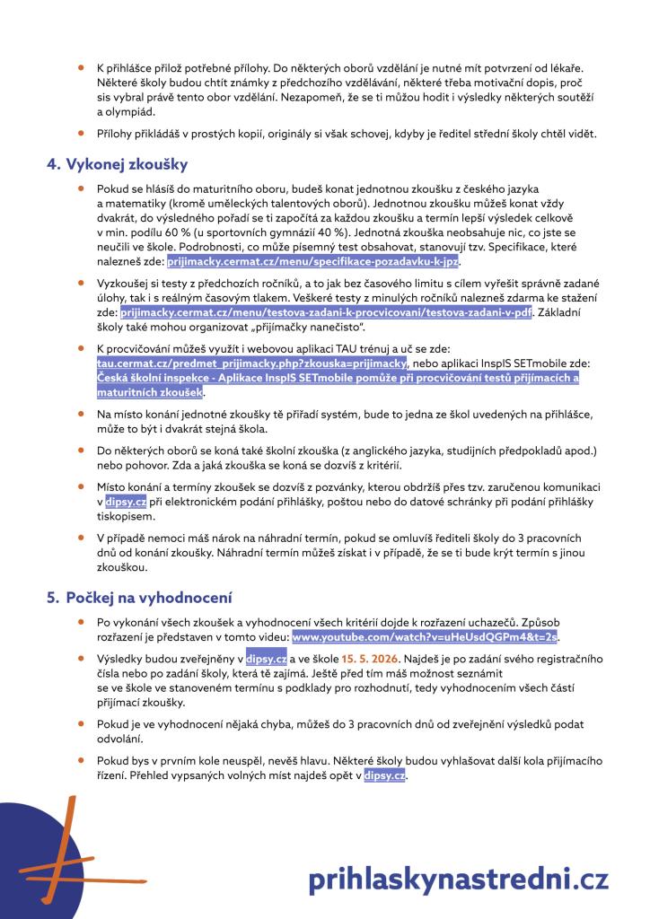 Další informace k tomu jak přihlášku podat a o jaké dokumenty ji doplnit, najdete brzy v aktualitách na naší webové stránce, či již nyní zde:https://www.prihlaskynastredni.cz/rodice-zaci.php.